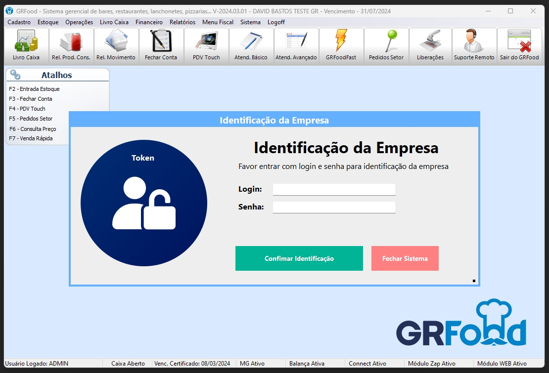 Importante: Alguns antivírus podem acusar um falso-positivo no instalador ou executáveis do GRFood. Recomendamos a desativação temporária do antivírus durante a instalação e a adição do caminho C:\GRFood\ na lista de exclusões do antivírus.